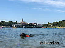 Lorsque les températures sont élevées à Bâle, il n'y a pas que les gens qui aiment se baigner dans l'eau fraîche. Beaucoup de chiens aiment aussi nager. Depuis le printemps 2013, deux zones de baignade sur les rives du Rhin à Bâle invitent les chiens et leurs propriétaires à se rafraîchir.