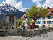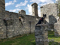 Après un copieux petit déjeuner à l'hôtel Bellavista à Ftan, nous commençons notre troisième étape à 8h30. Le sentier traverse la forêt et les prairies, toujours sur le versant ensoleillé de la vallée. Peu avant Ardez, nous atteignons les ruines d'une auberge du IXe siècle (Rouina Chanoua), qui se trouve directement sur le côté du chemin. Ici, nous faisons une pause et prenons de superbes photos des chiens. En continuant notre chemin, après un court moment, nous pouvons déjà voir les ruines du château de Steinsberg sur un rocher, un point de repère de la Basse-Engadine, et un peu plus tard, nous arrivons au village. Ardez est considéré comme un village modèle de la culture résidentielle romane et ses maisons magnifiquement peintes sont un délice. De là, nous continuons sur une route goudronnée ensoleillée et après une montée ardue, nous passons le hameau de Bos-cha et une demi-heure plus tard, cette fois sur un chemin plat, la belle Guarda. C'est un village typique de la Basse-Engadine, très fréquenté par les touristes en été. Guarda est la maison de Schellen-Ursli et les maisons de l'Engadine décorées de fleurs sont un sujet populaire pour les photographes. Mais on ne remarque pas grand-chose de tout cela. Comme tous les autres villages, Guarda semble désert à cette époque de l'année. A propos, voici aussi la plus petite bibliothèque du monde, sur 1 m2 seulement dans une cabine téléphonique Swissom aménagée.