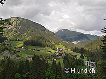 Comme nous devions encore travailler ce matin, nous ne commençons notre randonnée aujourd'hui que dans l'après-midi. A 16h10, nous commençons à marcher à la gare de Langwies. Les températures sont agréables, le soleil est couvert par quelques gros nuages. Tout d'abord, un chemin étroit nous conduit à travers une belle prairie fleurie et à travers la forêt jusqu'au viaduc de Langwies. L'ouvrage de 284 m de long est de loin le plus grand pont du Chemin de fer rhétique. Il se balance à 62 mètres de hauteur au-dessus d'une gorge. Depuis le viaduc, nous suivons le chemin en zigzag en descente, traversons le Sappüner Bach et le Plessur et remontons sur la rive gauche jusqu'à une large route de gravier, qui n'est praticable qu'avec un permis. Nous sommes maintenant dans la grande forêt du Prätschwald, sur le versant nord de l'Aroser Weisshorn. Le long de cette route, nous marchons d'abord légèrement en montée et en descente, puis seulement tranquillement jusqu'à ce que, après une heure et demie, nous atteignions le pont avant Molinis, qui se trouve à 10 km à l'est (à vol d'oiseau) de Coire. Au cours de l'été 1980, le village et son église ont été détruits par une avalanche de boue et de débris et reconstruits en 1982. A partir de maintenant, nous suivons une route goudronnée à travers la forêt et nous tournons à un carrefour sur un chemin étroit. Nous descendons alors dans la vallée d'un ruisseau jusqu'à ce que nous traversions le Grossbach par un petit pont. Pour les chiens, les nombreux ruisseaux sur le chemin sont idéaux. Ils peuvent boire suffisamment et se rafraîchir encore et encore. Toutefois, il faut supposer que pendant les mois d'été et d'automne, certains ruisseaux seront asséchés.