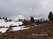 L'ascension d'environ 300 mètres d'altitude est facile à maîtriser sauf pour la dernière partie et une fois au sommet, vous êtes récompensé par une vue imprenable sur les montagnes environnantes. Après avoir franchi le col, le chemin devient plus plat. On y rencontre aussi un cerf et d'innombrables marmottes. Pour nous et pour les chiens, ce tronçon est le point culminant de la journée. Au loin, il n'y a rien d'autre à voir que des montagnes, des arbres, des buissons, des ruisseaux et de la neige.