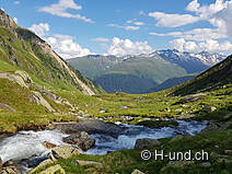 Après un long voyage jusqu'à Sedrun, nous commençons à 13h30 notre randonnée du jour sur le Chrüzlipass. Malheureusement, Gypsie tombe malade et ne peut pas se joindre à nous pendant les trois prochains jours.
