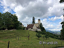 Au sommet de l'Ermitage se trouve le château de Birseck. De là, il monte plus haut jusqu'au château de Reichenstein. Nous avons renoncé au sentier de randonnée (là, vous arriveriez encore à une ruine) et suivi la route goudronnée jusqu'au château (pas de conduite).