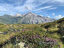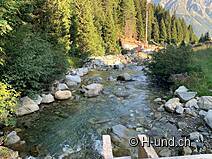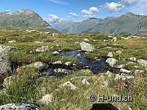 Vous suivez d'abord la Via Splüga jusqu'à Isabrüggli. Depuis que nous avons commencé à 8 heures, nous avons eu de nombreux endroits ombragés. Nous avons traversé de nombreux petits ruisseaux (tellement nombreux que notre eau transportée a finalement trouvé son chemin vers la maison). Mais après les phases sèches, il vaut mieux emporter le tout !