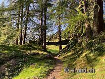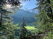 Après la pause, nous avons commencé la descente. Nous avons d'abord repris le même chemin, puis nous avons traversé la Fugschwald en direction de Splügen.