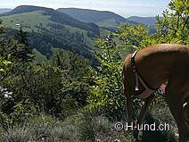 Continuez sur le chemin de gravier. Au prochain croisement, tournez à droite en direction de Hinteri Egg, le point culminant du canton de Bâle-Campagne. Suivez le chemin, y compris un virage à gauche. Les panneaux de randonnée sont très utiles pour cette visite. Le point culminant du canton BL / l'Oeuf Hinteri est atteint par un étroit chemin de terre. Continuez jusqu'au prochain grand point de vue, le "Chellenköpfli". Traversez la prairie, tournez à droite et vous arrivez au bord de la falaise sur un chemin en zigzag. Finja et moi avons suivi le panneau indiquant la station de montagne Wasserfallen. Au croisement suivant, nous avons tourné à gauche. Suivez le chemin et après un autre virage à droite, vous êtes un peu au-dessus de l'auberge de montagne Hintere Wasserfallen. Après une courte descente, on arrive déjà à l'auberge de montagne et, si on veut, on peut s'y arrêter. De là, il n'est pas loin de la station de montagne. La randonnée est terminée, mais il y a plusieurs façons de retourner à la station de la vallée :