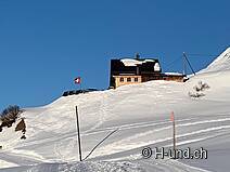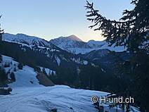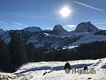 Cette randonnée hivernale d'une heure et demie est particulièrement adaptée pour un court voyage dans la neige et au soleil. Le point de départ du sentier de randonnée hivernale se trouve juste à côté du Gurnigel Berghaus. Accompagné d'une vue magnifique sur la chaîne du Gantrisch, le sentier se dirige vers le sud-ouest en passant au pied de la colline du Selibüel. Les sommets de l'Ochse, du Bürgle, du Gantrisch et du Nüneneflue forment l'imposante toile de fond de la montagne. Une courte descente mène à Wasserscheidi, le véritable col qui traverse le Gurnigel. La vue s'étend du Sensegraben au lac de Thoune. Après avoir traversé la route, le chemin continue à descendre vers le Stiereberg. De là, une légère contre-grimpe vous ramène au Gurnigel Berghaus.