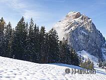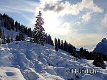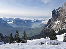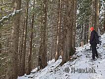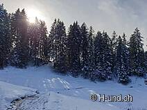 Le chemin qui mène à Brunni passe en partie par la forêt et, comme aujourd'hui, il n'y a pas assez de neige pour couvrir les racines, une affaire très glissante. De bonnes chaussures sont donc obligatoires.