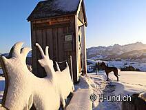 De là, continuez tout droit le long du ruisseau à travers une zone boisée jusqu'à une clairière où le chemin monte à gauche par un escalier en bois à travers une autre zone boisée. La randonnée se poursuit en passant devant le magnifique Gäbrisseeli, puis à gauche le long de la route vers le restaurant unt. Gäbris (fermé le mercredi) plus loin au Gäbris supérieur 1251m.a.s.l. (fermé le mardi).