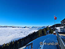 Au départ de Beckenried, la télécabine nous conduit à Klewenalp, à 1592 mètres d'altitude - bien au-dessus de la mer de brouillard, à la rencontre du soleil.