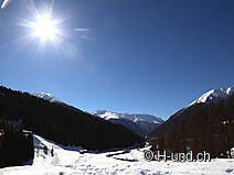 Le point de départ de la randonnée hivernale est la gare de Davos Frauenkirch, qui est accessible en bus ou en train depuis la Davos Platz en quelques minutes. Le sentier passe devant l'agréable Gasthof Landhuus et bifurque sur la droite après quelques mètres en direction de Lengmatta. De là, le sentier continue sur la Lengmattastrasse, légèrement en montée, en passant devant de belles maisons Walser. Sur une petite colline en contrebas de la route se trouve le restaurant Lengmatta, avec une terrasse ensoleillée et de délicieuses spécialités locales. Le sentier de randonnée hivernale mène ensuite pendant environ 10 minutes à une jonction et de là, légèrement à droite sur la Chummastrasse. En passant par le Chummerbach, le chemin mène à travers une petite forêt jusqu'au petit village de Hitzenboden, avec une vue fantastique sur la vallée du Landwasser. A quelques centaines de mètres de la vallée, il y a un carrefour où le chemin descend à gauche jusqu'à Davos Glaris, où le bus local vous ramène sur la Davos Platz.