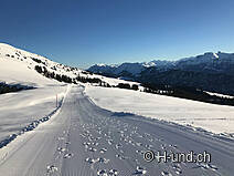 La randonnée commence sur le Niederhorn et convainc par le panorama incroyablement beau que l'on peut admirer tout au long du parcours. Le chemin est bien préparé et peut être parcouru sans problème avec de bonnes chaussures d'hiver. Toutefois, un certain niveau de forme physique de base est requis, car la durée de course pure est de 3 heures. Comme il n'y a pas de buvette sur le chemin, nous vous recommandons d'apporter vos propres boissons et éventuellement des sandwiches.