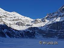 Le sentier mène à la station de télécabine de l'Oeschinensee. Après environ 10 minutes, le chemin tourne à gauche vers le lac gelé (veuillez informer bien avant la randonnée si le lac gelé est accessible).