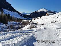 Le chemin de St. Antönien est damé (prendre les griffes des chaussures, peut aussi être glacé).