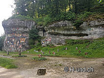 Dopo pochi minuti si raggiunge il 1° punto culminante, lo Chessiloch. Le pitture rupestri qui sono state realizzate durante la prima guerra mondiale, quando la valle strategicamente importante con la ferrovia e la strada a Chessiloch era sorvegliata dai militari.