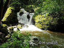 Ora segue l'ascesa attraverso la valle di Chaltbrunnen, dove si vive un'escursione di straordinaria bellezza lungo l'Ibach, attraverso il bosco di gole con numerose specie di felci e grotte, in cui sono state trovate tracce di insediamento dei Neanderthal e le più antiche tracce di insediamento dell'uomo attuale (Homo sapiens sapiens) nell'attuale Svizzera. Un paradiso, per così dire, il Giardino dell'Eden per un naso peloso amante dell'acqua Alla fine della valle di Chaltbrunnen, sempre lungo l'Ibach, il sentiero conduce al piccolo villaggio di Meltingen.