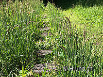 Dopo il passaggio a livello abbiamo girato a destra verso il bosco fino al primo laghetto (Fröschliweiher). Il sentiero passa davanti alla casa del guardaboschi e poi prosegue parallelo all'autostrada fino al secondo laghetto (Steffetsmösli). Seguiamo il percorso parallelo della superstrada fino alla sua curva e poi la attraversiamo per raggiungere il terzo laghetto (Fischbacher Mösli).