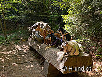 Abbiamo scelto un tour più lungo e abbiamo fatto il giro completo del lago - nella stagione calda è permesso anche nuotare. Da lì si ritorna attraverso l'autostrada nella foresta verso la Forsthaus Bremgarten. La tappa successiva è stata il Dreiländerstein, che collega i comuni di Bremgarten, Waltenschwil & Wohlen. Il quarto stagno (Rotwasser) ci è sfuggito a causa delle forti chiacchiere :-). Ma siamo arrivati direttamente all'Erdmannlistein - anche lì si può indugiare piacevolmente.
