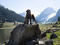 Sigel si trova su un crinale tra Wasserauen e il lago Sämtis ed è raggiungibile sia a piedi che con una piccola cabinovia che si può manovrare da soli. Ebbene, abbiamo deciso per questi ultimi e siamo stati i terzi a salire il 1° maggio. Arrivati in cima, si riesce a malapena a uscire dallo stupore - la vista sull'Hoher Kasten è troppo imponente. La salita è abbastanza facile, in inverno, tuttavia, in parte difficilmente visibile, motivo per cui non raccomanderei la strada per l'inverno. In alcuni luoghi, anche a maggio, era molto difficile giudicare quanto fosse alta la neve (stavamo camminando senza racchette da neve). Ovunque si guardi, si innalzano montagne gigantesche. Se si segue il sentiero, si arriva dopo circa 30 minuti a Chüeboden, dove i sentieri escursionistici si dividono: da un lato verso il Seealpsee e dall'altro verso il Sämtisersee o verso il punto di partenza. All'ultima capanna del villaggio scende un ripido sentiero che può essere facilmente trascurato. Questo si snoda in un bosco fiabesco che offre ombra nelle giornate calde. Una volta arrivati in fondo, ci siamo goduti una bella vista sul lago Sämtis, che si trova tra le Alpi ed è poco frequentato durante la settimana o nei giorni più freddi. Qui ci siamo presi una breve pausa per goderci il silenzio e per scattare una o l'altra foto. Direttamente sopra il lago si trova la pensione di montagna Plattenbödeli, che possiamo consigliare vivamente. Da qui si cammina attraverso il Brüeltoben e lungo l'Hexenwäldli (comprese le belle cascate) scendendo ripidamente fino al Pfannenstil (Brülisau). Durante tutta l'escursione sull'Alp Sigel non abbiamo incontrato una sola persona, solo quando siamo arrivati in fondo abbiamo incontrato qualcuno qua e là. Una meravigliosa escursione per uomini e animali!