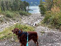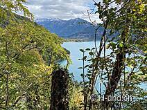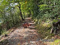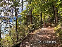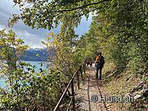 Prima abbiamo dovuto attraversare la strada e camminare lungo la strada. Ma presto arrivammo al bel sentiero sul lago. Bellissima foresta, belle case con giardini ben curati, il lago circondato dalle alte montagne, uno scenario davvero da sogno si è offerto a noi.