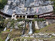 A Sundlauenen abbiamo attraversato il torrente e visto passare il battello a vapore, abbiamo proseguito fino alle grotte di San Beato. Qui incontriamo molti turisti.