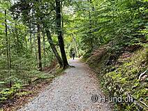 Dopo di che il nostro cammino di pellegrinaggio sale e passiamo sopra la cava e abbiamo una buona vista sul Niesen. Troviamo anche una bella panchina con vista sul lago di Thun.