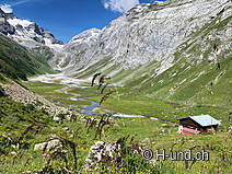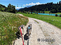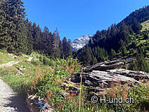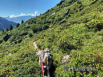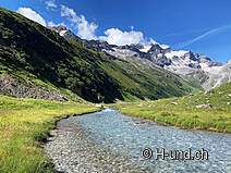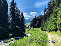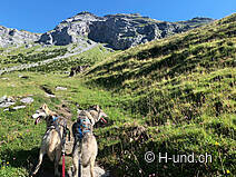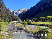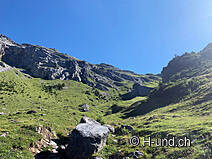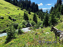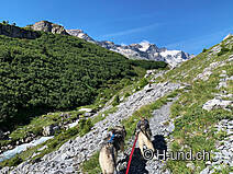 Gli animali alpini si trovavano sui pascoli superiori. Penso che luglio sia il mese ottimale per questo tour. I cani al guinzaglio possono annusare molto e ci sono sempre occasioni per farli bere dai ruscelli.