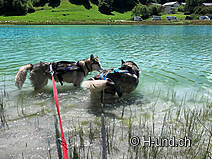 Passando ancora una volta i luoghi intanto popolati delle grigliate, abbiamo presto raggiunto di nuovo Brigels. Solo che questa volta siamo andati direttamente al parcheggio. Così si ha una bella vista sul lago artificiale dove ho fatto il bagno finale alle mie 2 ragazze.