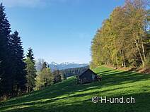 Dalla frazione Baumgarten ci sono circa 340 HM fino a Bütschelegg attraverso il prato e il bosco (in estate potrebbero esserci delle mucche).