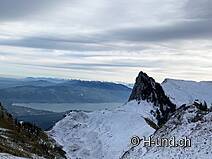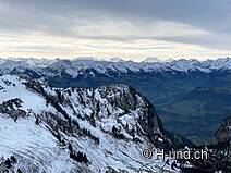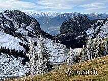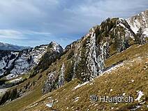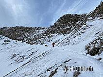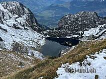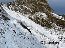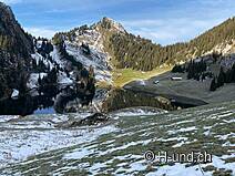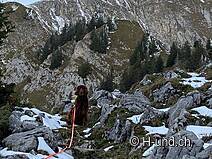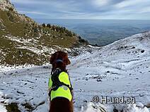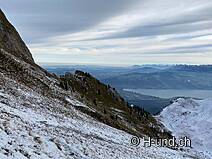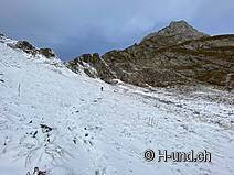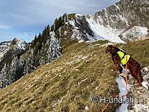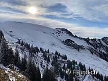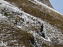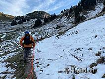 Kesh è in febbre da caccia e ci mostra diversi camosci. Dopo l'Oberbärgli raggiungiamo presto il versante nord con vista sul Thunersee. Sul versante nord siamo poi sorpresi da un bel po' di neve.