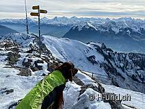 Al ristorante Stockhorn saliamo per primi in cima. In seguito pranziamo nel ristorante per cani.