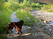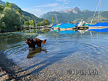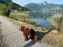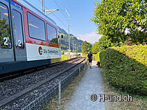 Parcheggiamo la nostra auto a Giswil alla stazione Zentralbahn. C'è un parcheggio in zona blu davanti alla Coop, un parcheggio a pagamento davanti alla stazione e un parcheggio Park and Rail dietro la stazione. Quando siamo pronti a partire, prendiamo il treno fino alla fermata Ewil Maxon. Per i nostri senior, i 4 km di ritorno sono una distanza ideale. Gli amici a quattro zampe più in forma possono scendere prima a Sachseln (6 km) o a Sarnen (10 km). A Ewil Maxon prendiamo la metropolitana fino al lago. Il sentiero del lago è riservato ai pedoni e il guinzaglio è obbligatorio. I cani possono sempre nuotare e ci sono belle panchine e anche Robidog. Verso la fine del lago vediamo il ristorante Zollhaus sopra la linea ferroviaria. Sotto la linea ferroviaria si trova la fermata del battello Sarnersee. Proseguiamo la nostra passeggiata e arriviamo a una riserva naturale. Un breve tratto è asfaltato e poi si attraversa una strada. Poi arriviamo alla Melchaa, un bellissimo ruscello rinaturalizzato, dove ci sono molti fiori selvatici e Kesh può fare un'altra bella nuotata. Prima del villaggio di Giswil, attraversiamo la Brünigstrasse e camminiamo dietro la strada principale attraverso l'industria per tornare alla stazione.