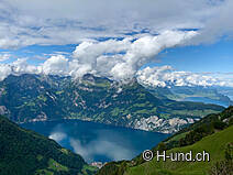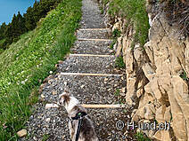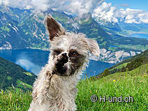 Con la funicolare più ripida del mondo si sale allo Stoos. Da lì si prosegue a piedi fino al Klingenstock (escursione molto faticosa, ca. 3h) oppure si sale con la seggiovia. Abbiamo deciso per il secondo. I cani costano 5Fr.