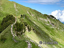 Arrivati sul Klingenstock, inizia la camminata sul crinale. Si va alternativamente su e giù, si dovrebbe essere liberi da vertigini e sicuri.