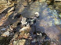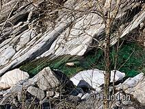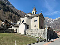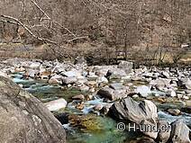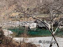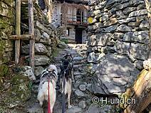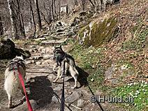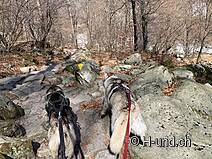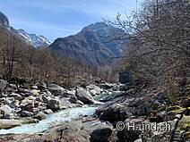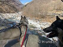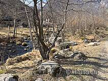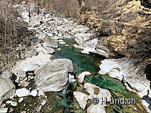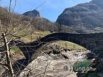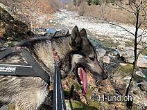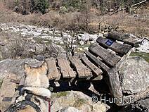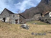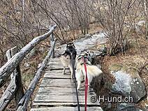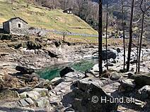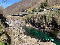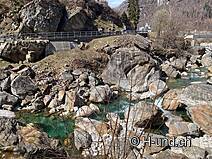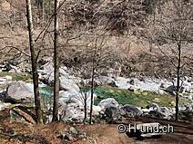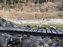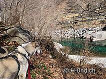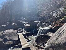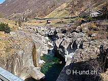 condizionato stagionalmente, avevo direttamente sulla strada principale abbastanza posti d'acqua per i cani. A Frasco si cambia attraverso un ponte sospeso a griglia di nuovo il lato della valle. E lì avevo anche la neve, perché questo pezzo prende ancora poco sole.