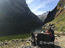 Arrivati in cima abbiamo fatto una deviazione alla zona barbecue sulla cima dell'Alpsiegel per avere una vista. In seguito abbiamo camminato tranquillamente sopra la bella alpe e poi siamo scesi a zig-zag attraverso il bosco e risaliti lungo la scogliera fino al Fälensee mozzafiato. Lì abbiamo pranzato al ristorante Bollenwees prima di partire sulla via del ritorno, appena rinvigoriti.