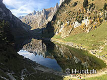 Una piacevole discesa su prati e sentieri nel bosco passando per il Sämtisersee, che non aveva quasi più acqua, la pensione di montagna Plattenbödeli e il ristorante Ruhesitz. Al che un sentiero escursionistico porta giù al parcheggio di Brülisau.