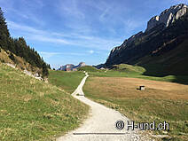 Abbiamo iniziato la nostra escursione nel parcheggio di Brülisau dove parte la funivia per l'Hohen Kasten. Tuttavia, abbiamo camminato lungo la strada verso Pfannenstiel per arrivare alla piccola cabinovia Alpsiegel. In parte la funivia viene azionata, in parte si deve azionare la funivia da soli. (I cani salgono al prezzo di 5.- CHF.)