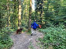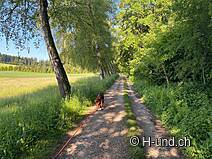 Poi iniziamo la nostra escursione circolare nel Burgergemeinde Lotzwil in direzione della Forsthaus. Il sentiero ci conduce attraverso un bellissimo bosco lussureggiante con molti alberi ad alto fusto. In estate penso che qui sia bello e fresco. Nella casa del guardaboschi di Lotzwil c'è una grande area barbecue e una fontana (non so se ha sempre l'acqua) e anche delle belle figure in legno. C'è uno speciale Waldgeiseter - e Figurenweg, ulteriori informazioni sulla homepage Oberaargau Tourismus. Il nostro sentiero ci porta ai margini del bosco con vista su Busswil b. Melchnau. Qui c'è una bella panchina per riposare. Quando entriamo di nuovo nel bosco, il sentiero ci riporta al punto di partenza intorno al Rappechopf. Il percorso è poco frequentato durante la settimana. Pensiamo che nei fine settimana ci saranno molte persone. A Lotzwil c'è un ristorante.