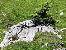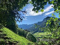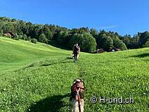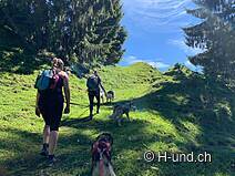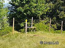 Poco prima dell'Hinterfallenkopf, è arrivata la prima piccola sfida per gli escursionisti a 2 e 4 gambe. Un attraversamento di un pascolo con un gradino e una recinzione a spuntoni. Per aiutarci è venuta la parte del mio posto per la strada. In modo che questo potesse essere padroneggiato in modo sicuro per i cani - uno dopo l'altro (!! Ne seguirono altri 3!!!). Poco dopo seguì la discesa nella zona dell'Ofenloch.