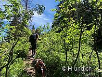 Rapidamente abbiamo trovato il cartello che indicava Hinterfallenkopf. Su sentieri prevalentemente naturali abbiamo attraversato più volte i pascoli delle mucche - alcuni con, molti senza mucche. Un tratto è passato davanti a imponenti aceri, costantemente in alto.