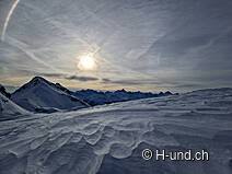 Questo percorso di 4 km con le racchette da neve a quasi 3.000 metri di altitudine offre una vista panoramica mozzafiato e unica sul ghiacciaio della Plaine Morte.