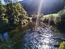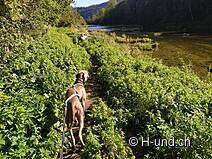 Siamo partiti subito nel villaggio un po' sonnolento di Soubey, dove c'è anche un parcheggio pubblico gratuito sul Doubs. All'inizio il sentiero si snoda su asfalto, attraverso il bosco e si può vedere il Doubs attraverso gli alberi solo in parte o da lontano. Ma questo cambia dopo poco tempo e la strada si dirama sul campo e si è di nuovo in acqua. Abbiamo attraversato il ponte a traliccio per arrivare dall'altra parte del fiume e continuare a seguire la Route 95. Da lì il percorso si snoda costantemente lungo il bellissimo Doubs su prati/pascoli e attraverso il bosco, dove la zona ha in qualche modo qualcosa di mistico. Sempre più spesso, i luoghi accoglienti invitano a soffermarsi, che abbiamo poi utilizzato anche noi. Dopo esserci rafforzati in uno dei locali pubblici per la grigliata, abbiamo proseguito in direzione di St.Ursanne. TUTTA L'ETAPPE E' SOTTO TUTTA LA PROTEZIONE DELLA NATURA, ho lasciato il mio solo brevemente dal guinzaglio in modo che potesse rinfrescarsi e rinfrescarsi nel Doubs. C'erano anche dei pascoli occupati da attraversare, ma le mucche non hanno mostrato alcun interesse per noi. A St. Ursanne si può vedere da lontano il grande viadotto che porta direttamente alla stazione che si trova sopra la città. La strada porta direttamente alla pittoresca cittadina, che invita anche a soggiornare. Tuttavia, dal momento che So. e bel tempo era, ha avuto per noi, ma poi un po 'troppo persone. Così abbiamo deciso di andare in direzione della stazione. Qui nella piccola città poco dopo l'arco siamo andati poi li. e abbiamo seguito qualcosa la strada faticosa che porta, tuttavia, in una piccola cappella presso la roccia passato passato e di nuovo un pezzo dal bosco va e una vista ha su tutta la città. Già per questo motivo vale la pena di andare avanti. Dato che abbiamo iniziato già al mattino, abbiamo incontrato solo poche persone sul percorso.