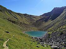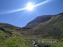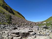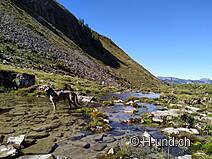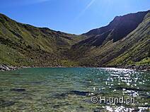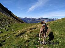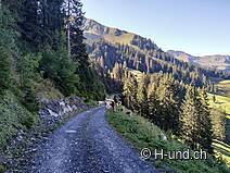 Non c'è un obbligo ufficiale di guinzaglio, ma dato che bisogna aspettarsi mucche e cavalli al pascolo lungo tutto il percorso, tengo Indira al guinzaglio fino a "Undere Meiefall" e poi la lascio correre libera fino al lago. Si consiglia di fare il percorso da metà settembre in poi, perché non ci sono più mucche al pascolo sull'alpe in cima al lago.