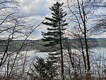 Poi camminiamo in salita per un breve tratto. Dopo un po' si raggiunge la "Herrenwald", dove si guadagna quota attraverso scale e radici. Si apre un quadro quasi fiabesco con un piccolo stagno. Attraversiamo poi il Vitaparcours, dove è obbligatorio il guinzaglio per i cani. D'ora in poi avremo la vista del lago attraverso gli alberi. Torniamo al punto di partenza attraverso un sentiero di campo.