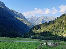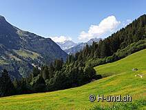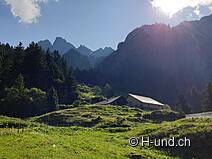 In realtà abbiamo pianificato a "Bruch" già la via del ritorno (totale ca. 2h), ma il fantastico panorama del sole mattutino ci ha spinto ad andare avanti. Lungo il Chrauchbach fino a Unterstafel. Da qui il sentiero si incrocia con la possibilità di salire fino al Flumerserberg (ad es. via Spitzmeilen). Decidiamo per l'escursione circolare e attraversiamo il torrente.