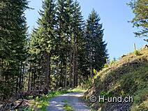 Una leggera e piacevole salita su un fresco sentiero nel bosco ci porta poi attraverso il Bruchrunenwald. Via Stigerberg torniamo poi a piedi alla stazione a monte dove ci concediamo un fresco Panaché nel ristorante "Wirtschaft zum Weissenberg". A proposito, qui ci sono anche due camere doppie (estate e inverno) dove i cani sono i benvenuti.