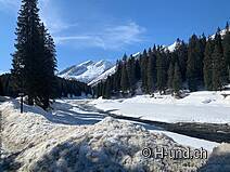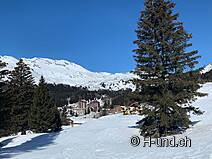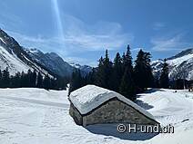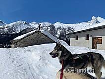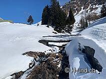 C'è soprattutto una pista per le escursioni invernali e per i corridori LL. Dopo i primi 10 minuti abbiamo dovuto attraversare 2 strade. Rapidamente, perché eravamo soli in lungo e in largo, abbiamo raggiunto l'Alp Pan Doss. Qui si poteva prendere qualcosa da mangiare.