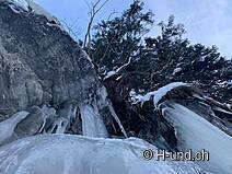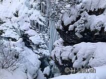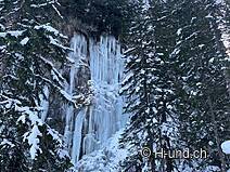 2 volte attraversiamo un ruscello, per cui al ponte 2 ha per lo più belle formazioni di ghiaccio. Poi si fa un po' più piatta per un po' di tempo prima dell'ultima breve salita al Berggasthaus Heimeli.