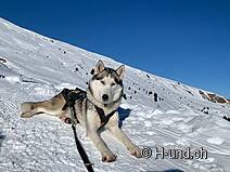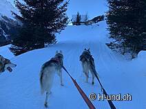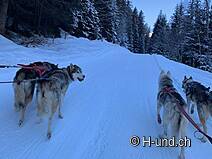 Die Strecke hat auch einige zügige Steigungen drin. Im oberen Teil nach der Mittelstation wird die Strecke ca 1 km von allen Wintersportlern benutzt. Wir hatten weiterhin aber nur ein par wenige Skifahrer, die uns entgegen kamen. Und im oberen Stück gabs dann vereinzelte Schlittler.