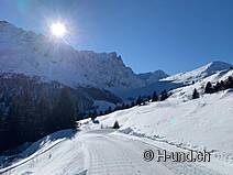 Eine Winterwanderstrecke, welche wenn sie wie von uns ab Tal in Angriff genommen wird, ein wenig Kondition abverlangt. Und sicher an einigen Streckenteilen es ratsam ist, denn Hund an der Leine zu führen.